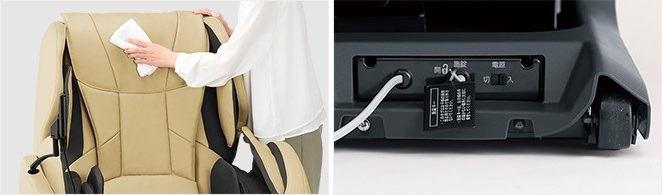 Ghế Massage Panasonic Real Pro EP-MA103 nội địa Nhật Bản xó thiết kế hiện đại với 3 màu be, ngà voi và màu đen phù hợp với mọi thiết kế nội thất được bọc da tổng hợp (da mềm) với độ bên cao, chắc chắn, tiện lợi khi lau chùi.Ghế Massage Panasonic Real Pro EP-MA103 nội địa Nhật Bản rất dễ dàng khi mang vào nhờ bánh xe di chuyển. Tấm che chân có thể tháo rời và giặt được.