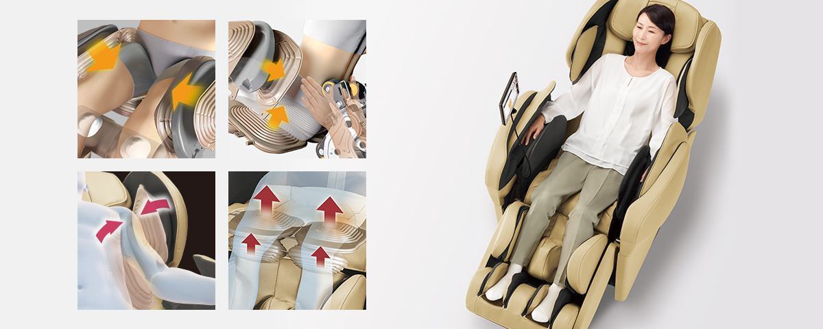 Một hệ thống liên kết nhiều túi khí và nhằm mục đích tạo ra cảm giác mát xa như được bao bọc trong bàn tay con người. Hai công nghệ độc đáo hiện thực hóa chúng là “Cấu trúc phù hợp với cơ thể” và “Điều khiển đa van”.