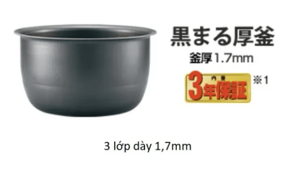 Lòng nồi được trang bị ruột nồi đen Atsutesukama dày 1,7mm chống dính siêu tốt, cấu tạo nhiều lớp với chất liệu cao cấp giúp tăng nhiệt lượng truyền đến từng hạt gạo, nước sôi làm hạt xoay tròn, giúp chín đều nhanh, không bị nát hạt gạo, giữ được nguyên bản vị ngọt umami có trong hạt gạo.